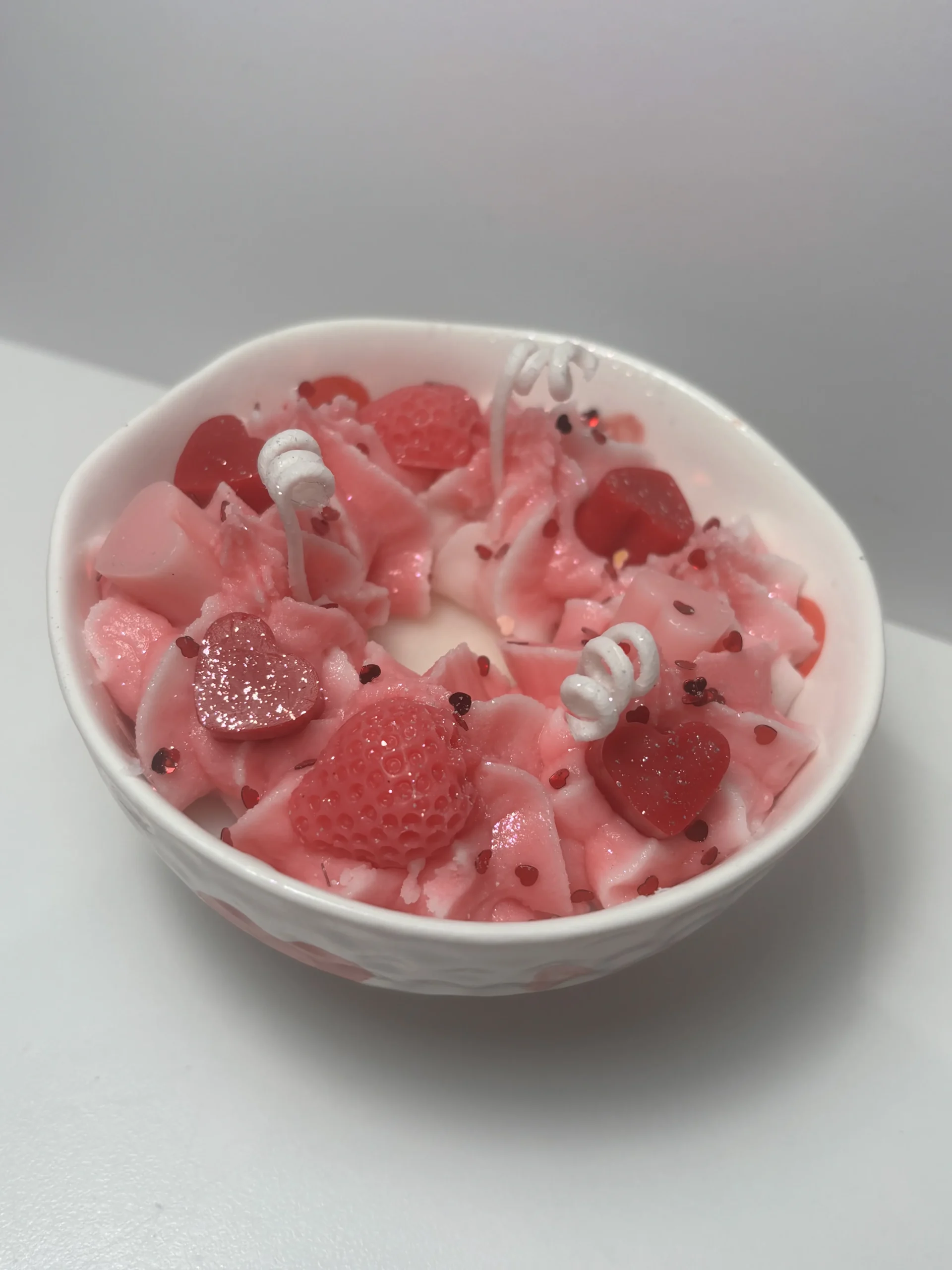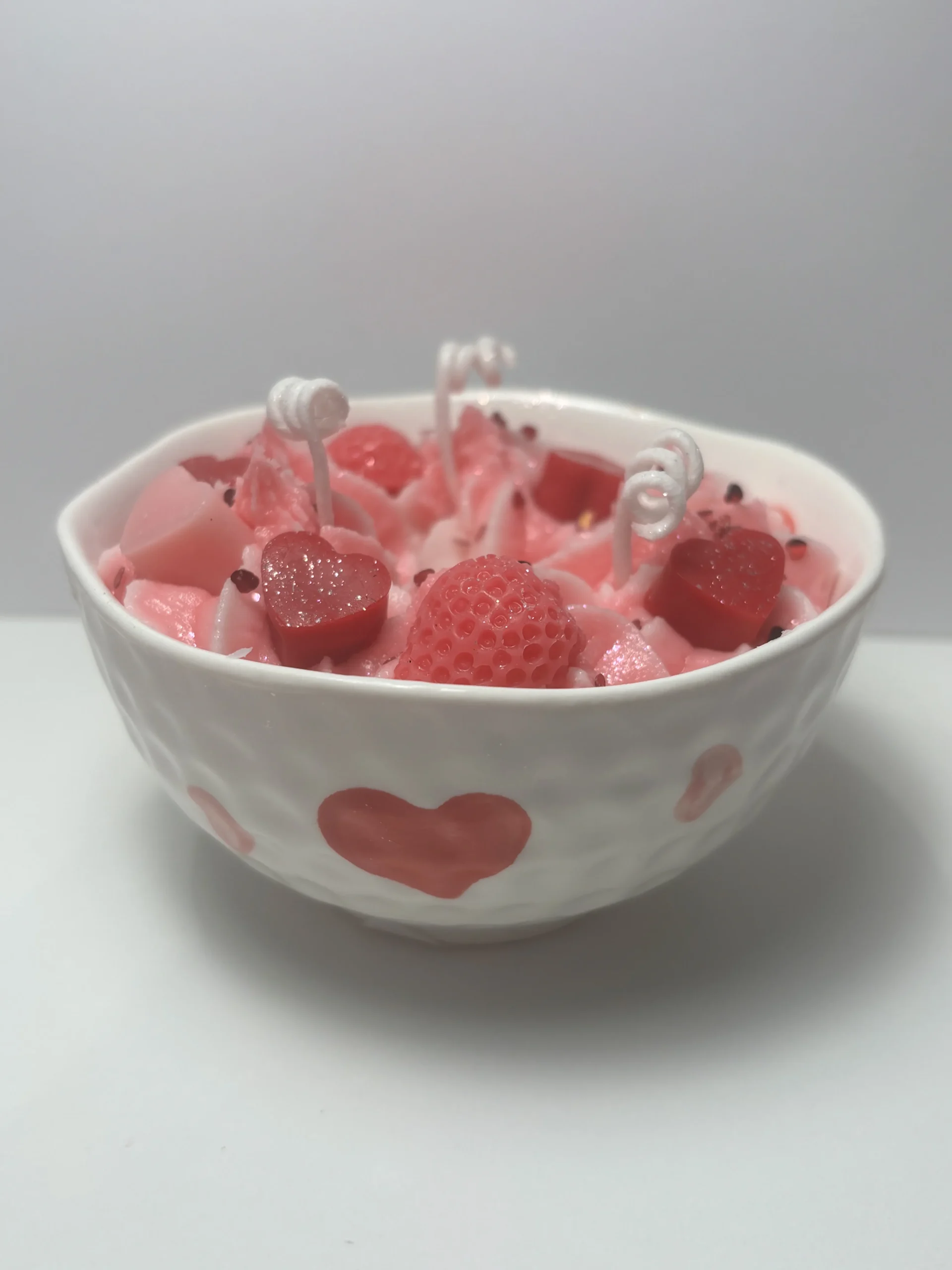 Χειροποίητο κερί σόγιας με άρωμα strawberry secret love,σε κεραμικό μπολ με καρδούλες!