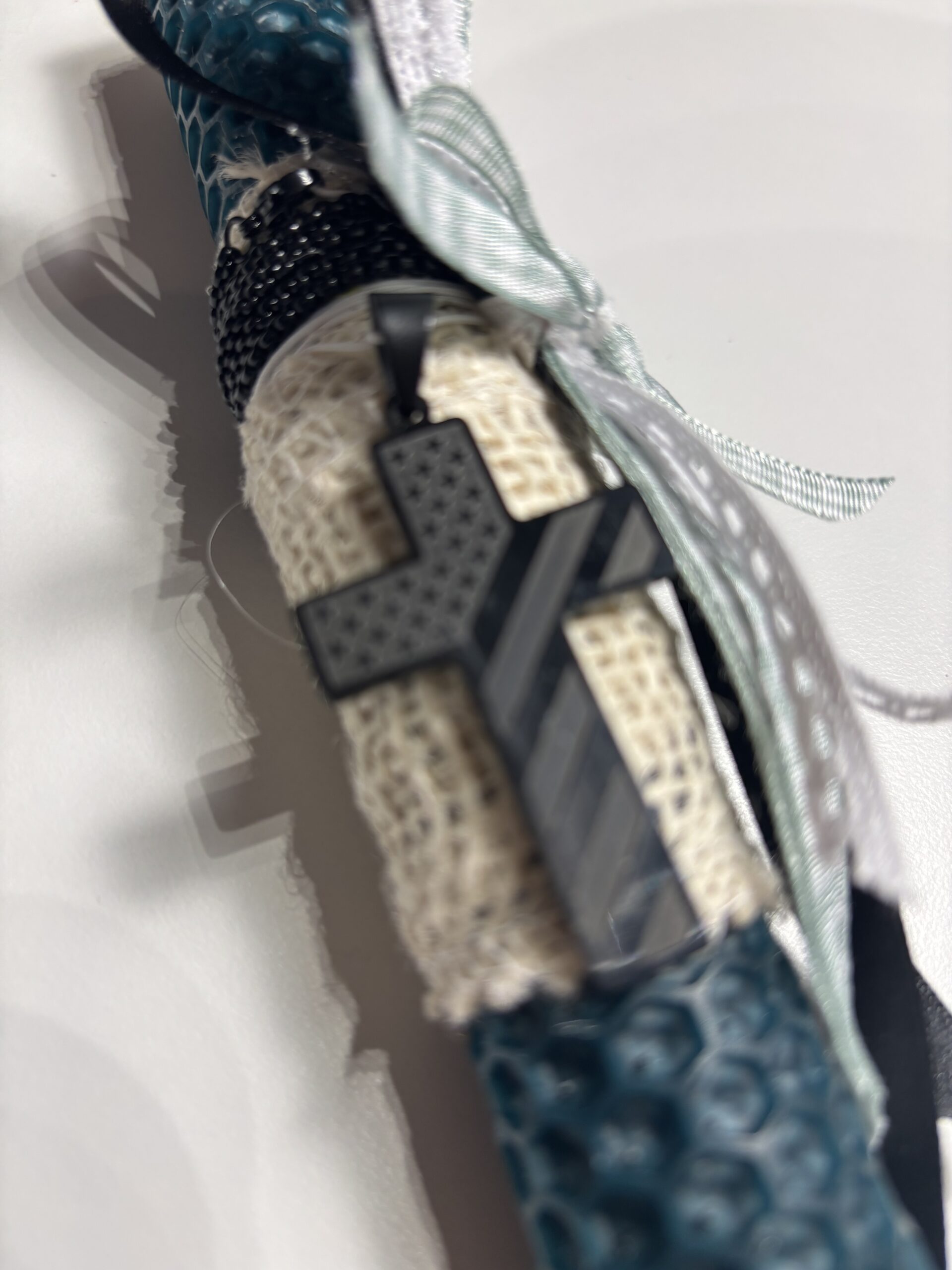 Ανδρική λαμπάδα σε πράσινο σκούρο χρώμα από μελισσοκέρι, διακοσμημένη με αντρικό Σταυρό σε μαύρο χρώμα από ανοξείδωτο ατσάλι!