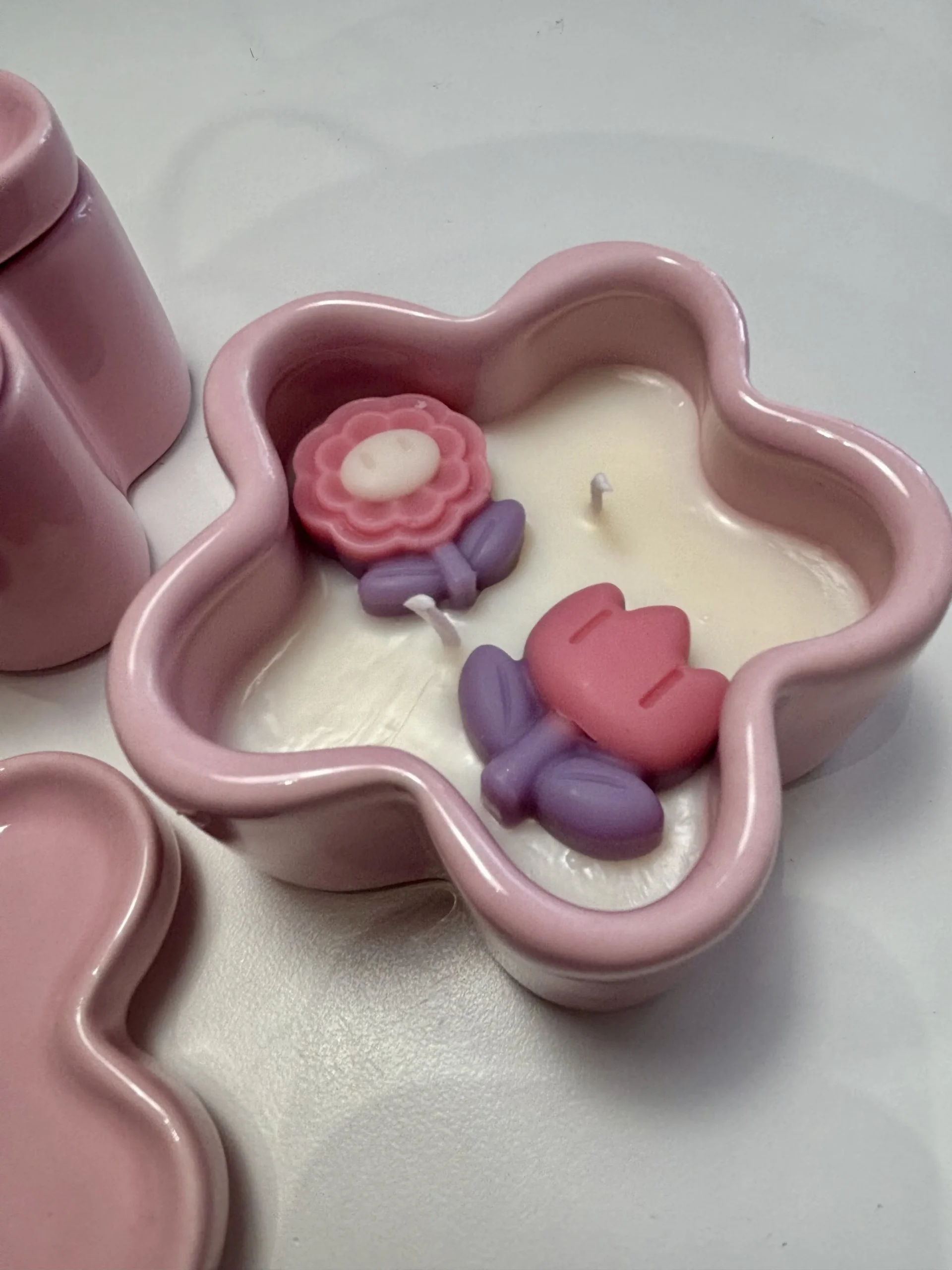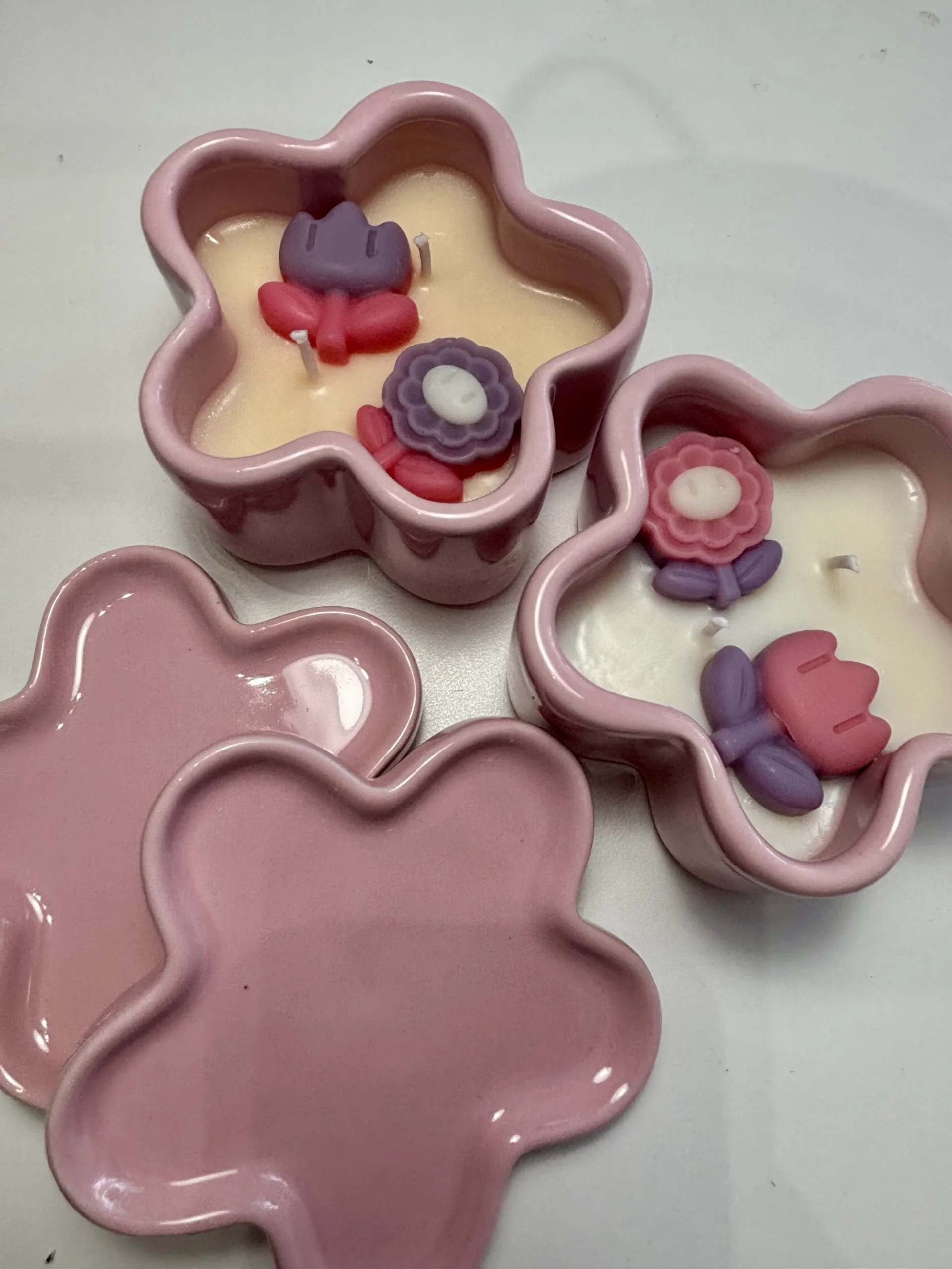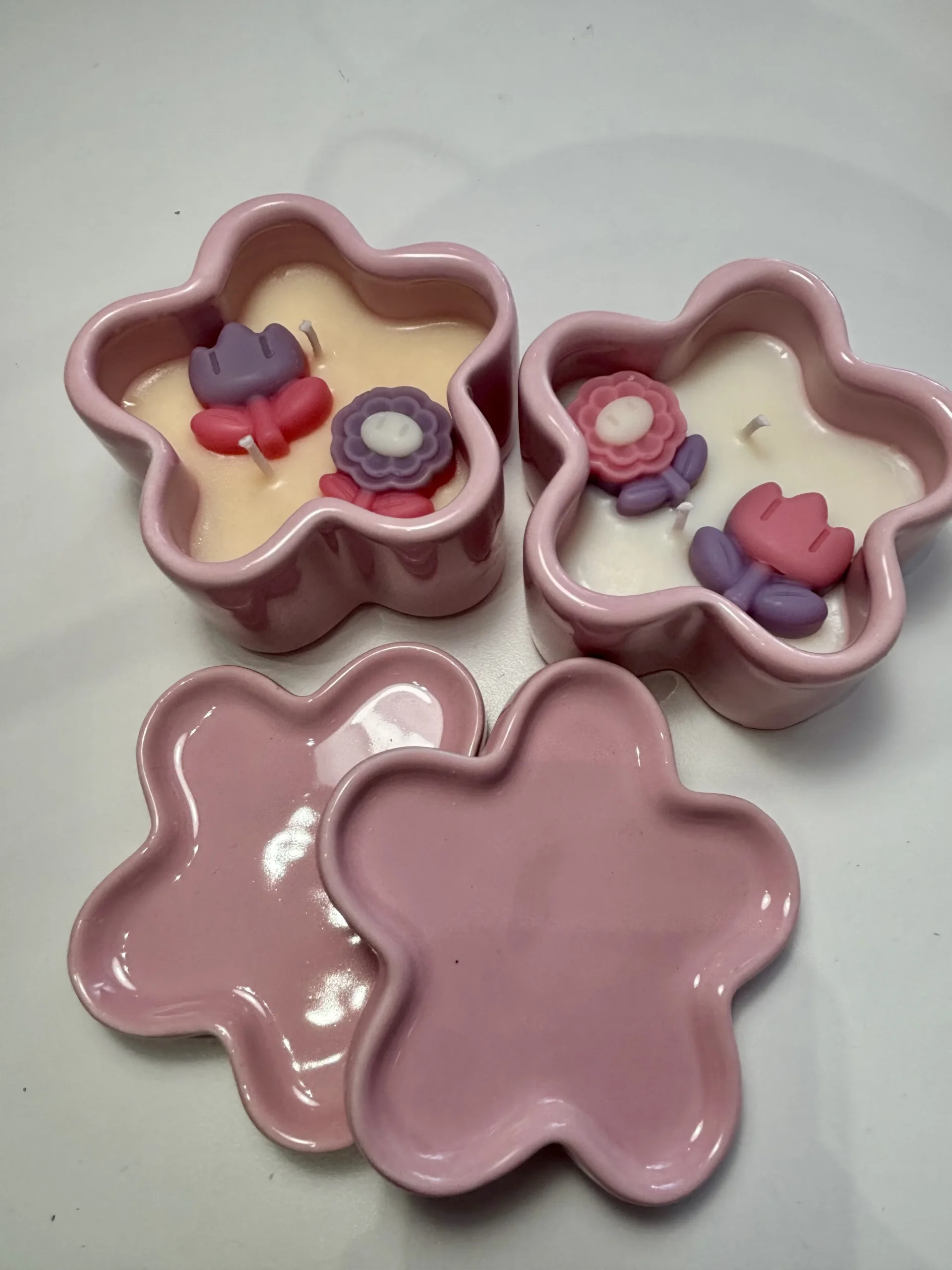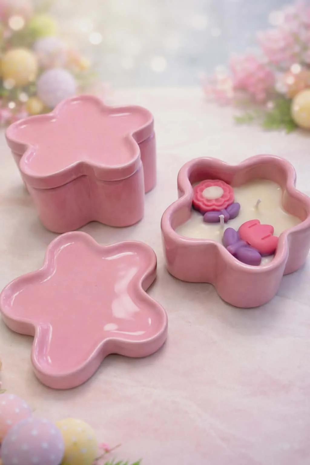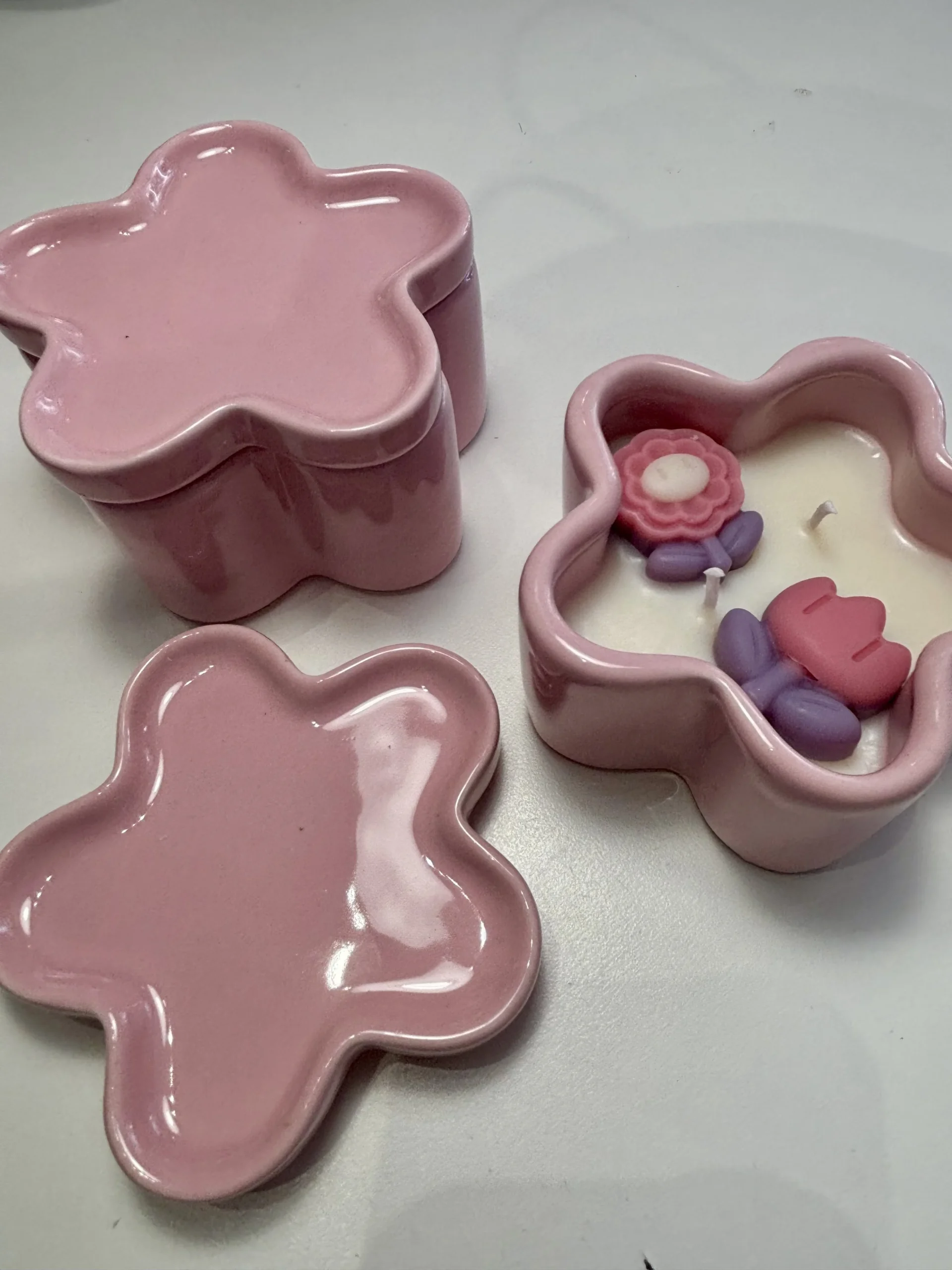 Κεραμικό δοχείο μαργαρίτα με καπάκι ,με φυτικό κερί ελαιολάδου σε δύο αρώματα νυχτολούλουδο και spring blossom