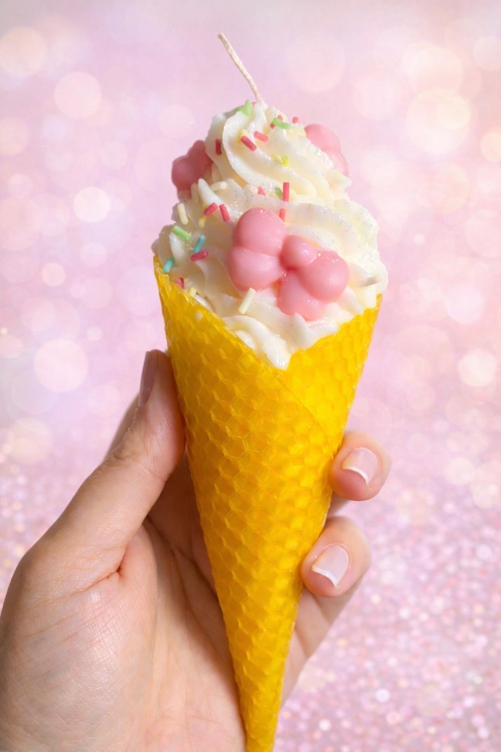 Λαμπάδα παγωτό χωνάκι, με χωνάκι από κερήθρα και παγωτό από φυτικό κερί σόγιας !! Το άρωμα που έχουμε διαλέξει για αυτό το υπέροχο προϊόν είναι μπισκότο καραμέλα!!